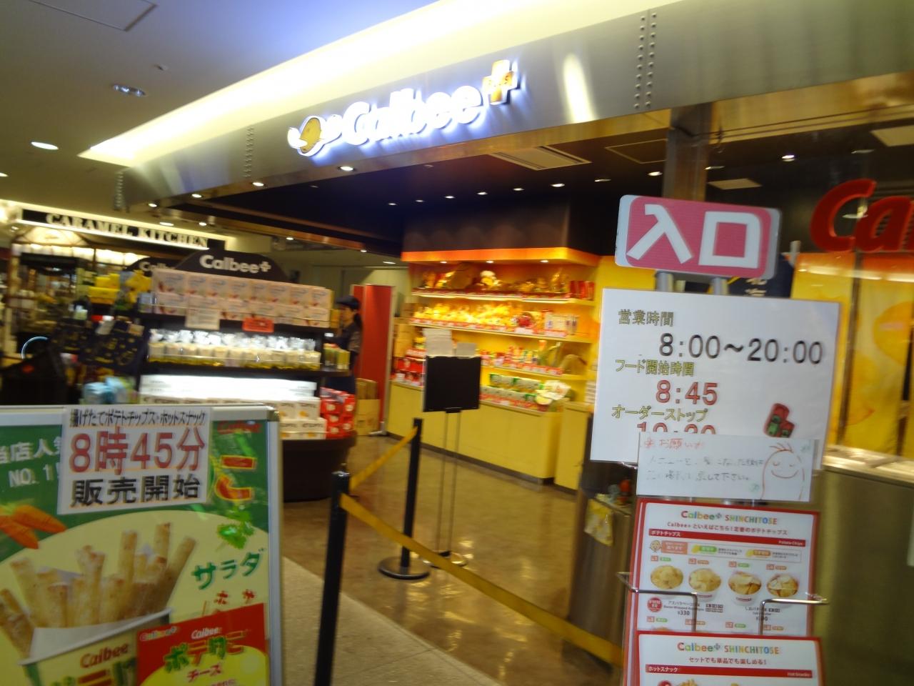 新千歳空港のカルビーのショップで名古屋の友達への手土産を買うある。