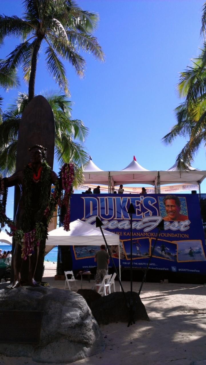 いつものワイキキビーチ中心でサーフィン大会なんて初めて。大勢きています。
