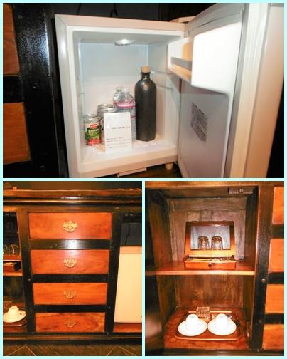 右から冷蔵庫、引き出し、紅茶セットの順に並んでいました。 -