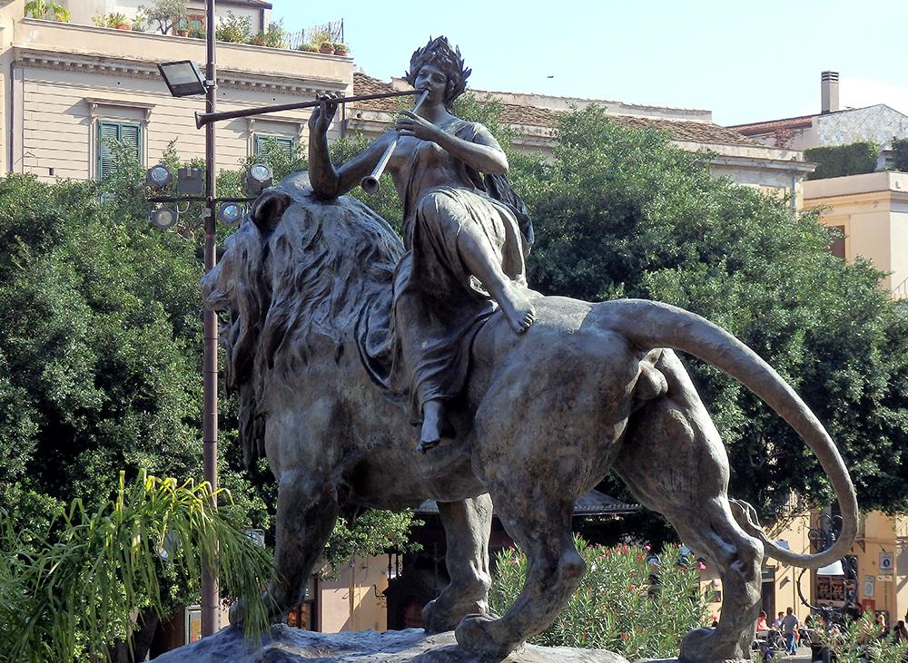 ノルマン王宮前のヴィットーリア広場に立つ彫刻。