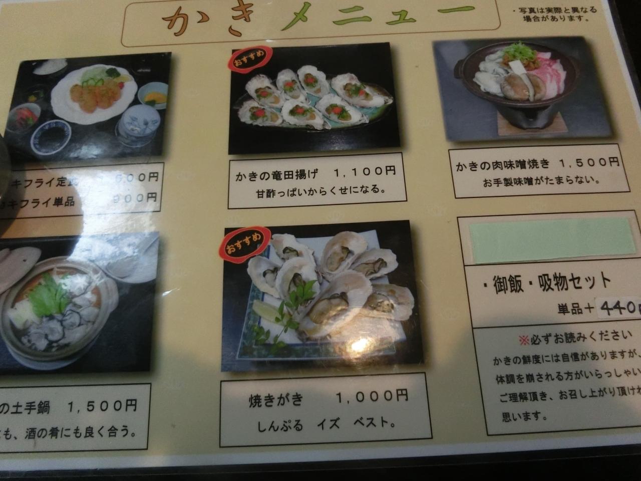 牡蠣のメニューです。