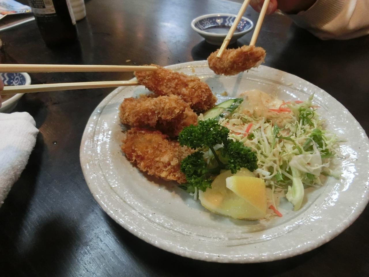 八百屋で聞くと、どこの店でも牡蠣は食べれるとのこと。