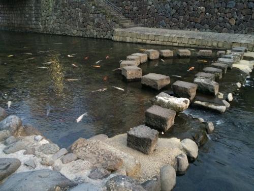 かなり旧なでこぼこの階段を降りて川沿いへ。