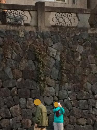 で、ここで石壁と写真を撮っている人を発見!!