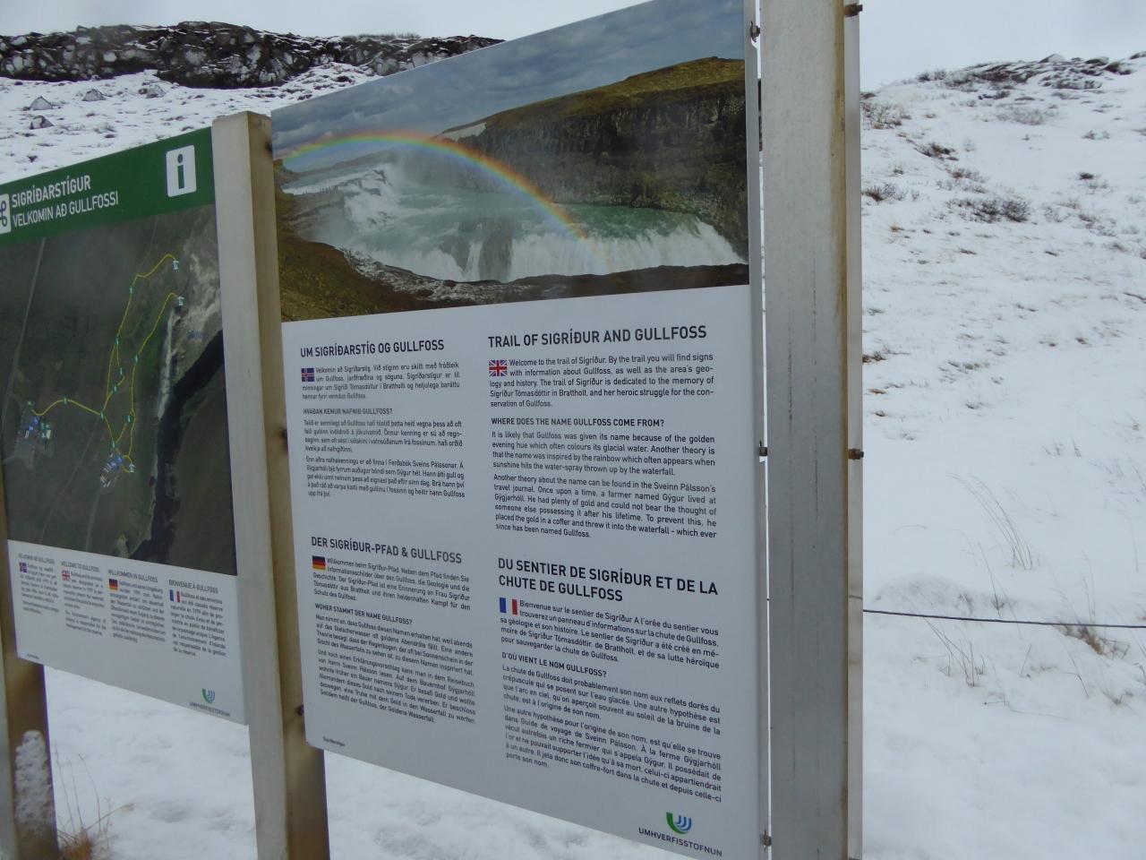 表記はGullfoss。「gull」は金色、「foss」は滝です。だから正確には「グトル滝」が正しいとも言えます。