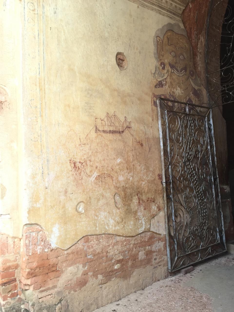 この劣化した箇所は、かなり細かい壁画で昔の街のような絵が描かれていました。これは圧巻でした。
