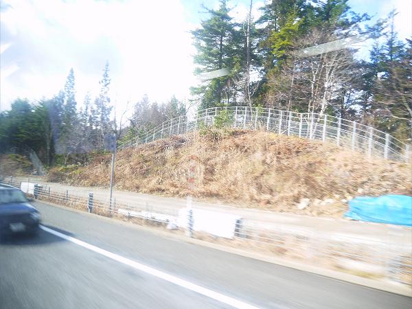 そして、再び上りの車線に入ります。路面に雪は有りませんが路傍には薄っすらと雪が有ります。 -