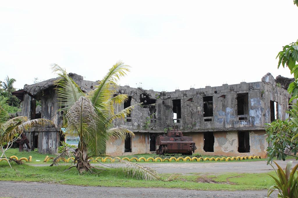 日本海軍通信隊跡−廃墟と化した建物周辺には戦車や高射砲が錆びついたままになっていました。
