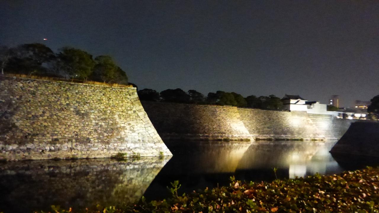 1日目に泊まった「ホテル京阪天満橋」から大阪城は近い為、本来は翌日の午前中に行こうと考えていたのですが、翌日神戸への移動を早めたかったのと、天守閣のライトアップを見てみたいと思い、宿泊日の夜に行く事にしました。