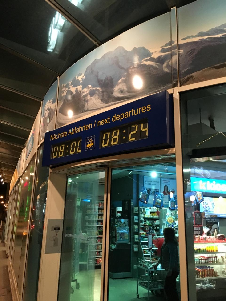 遅くまで滑っていると、リッフェルベルグからは帰りツェルマット行きの臨時列車?(たぶん)が出る。ゴンドラまたはスキーで一番下まで帰るとゴンドラ駅発のバスが満員なのでリッフェルベルグ経由で帰ることをおすすめします。座ってツェルマット、ゴルナーグラートバーンの駅まで行けます。