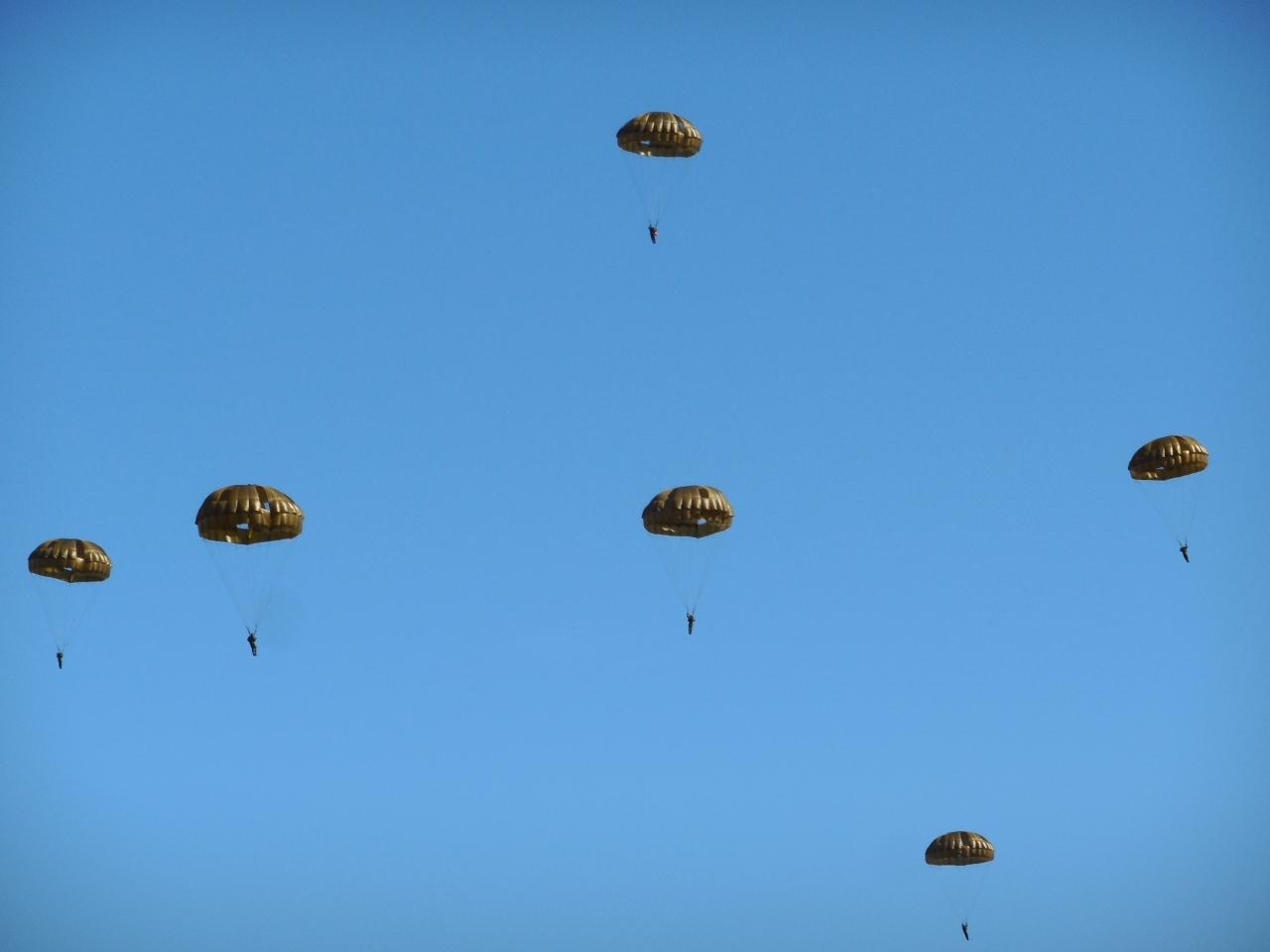 地上に降りた空挺団員が前進