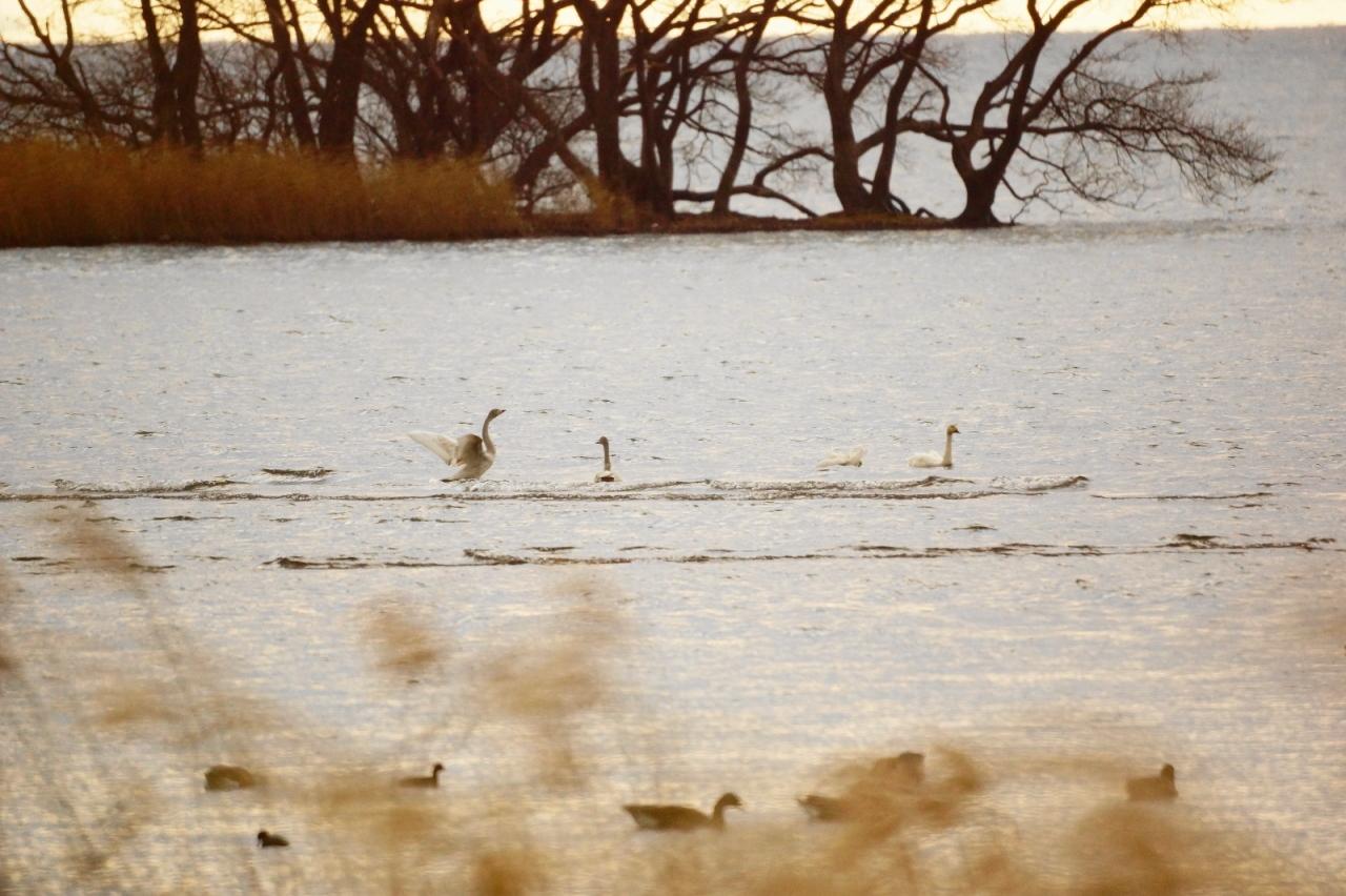 センターに来る途中に見える早崎ビオトープの方に、多くのコハクチョウがいました。