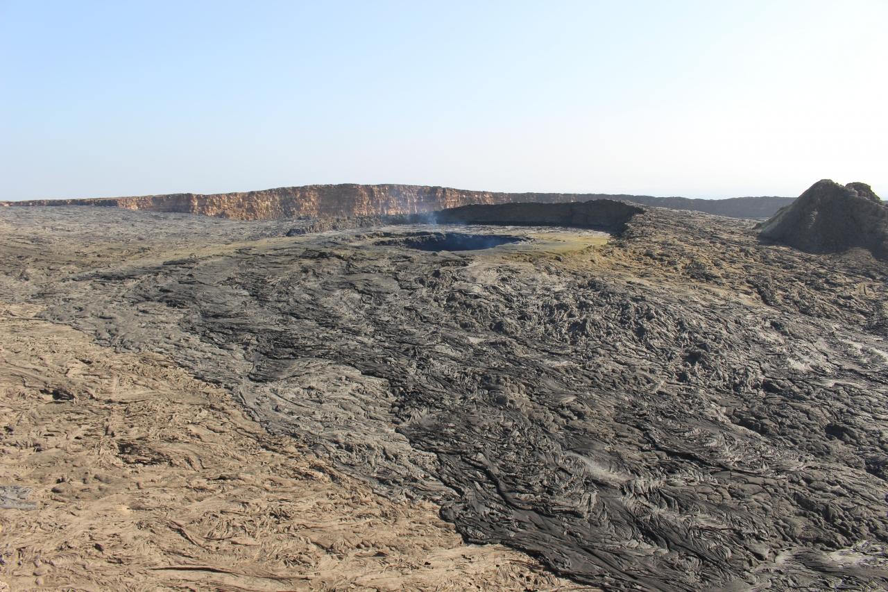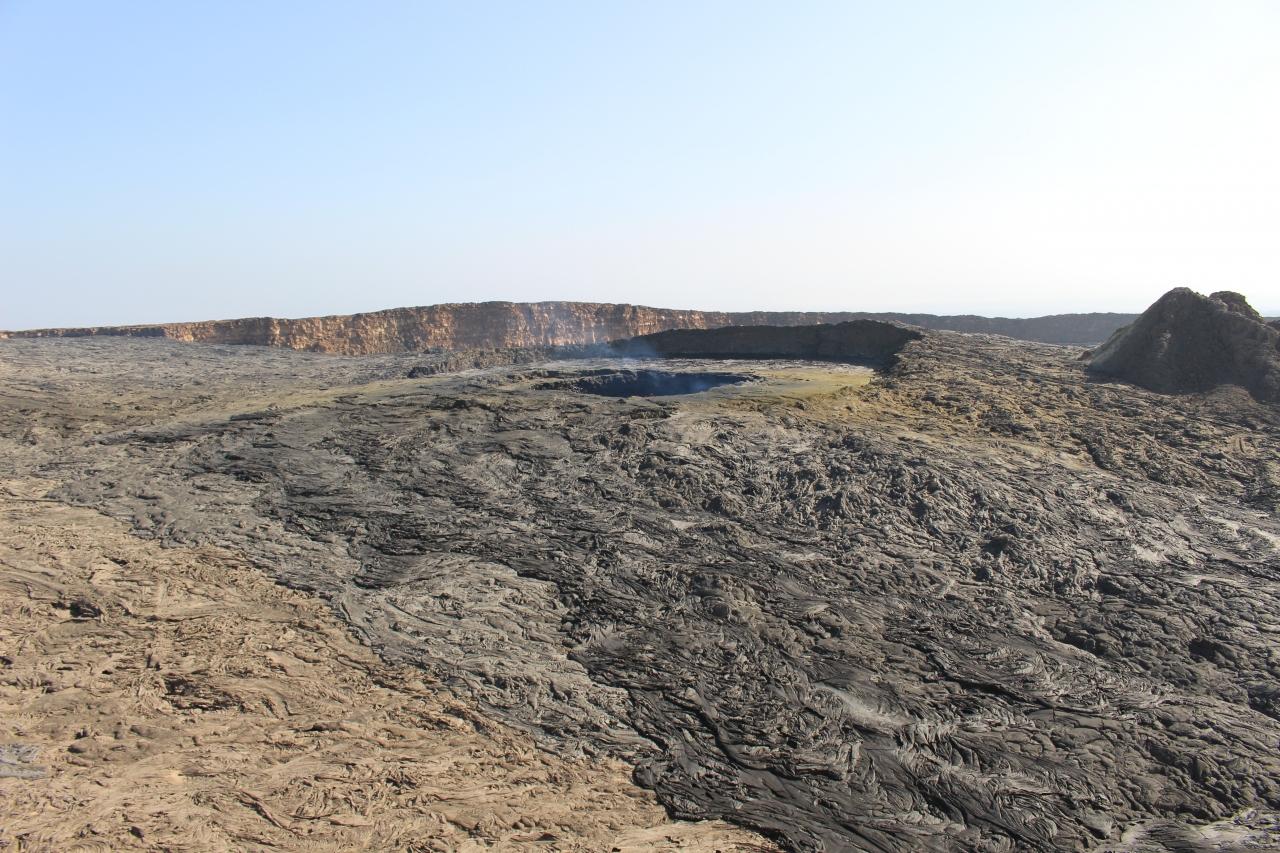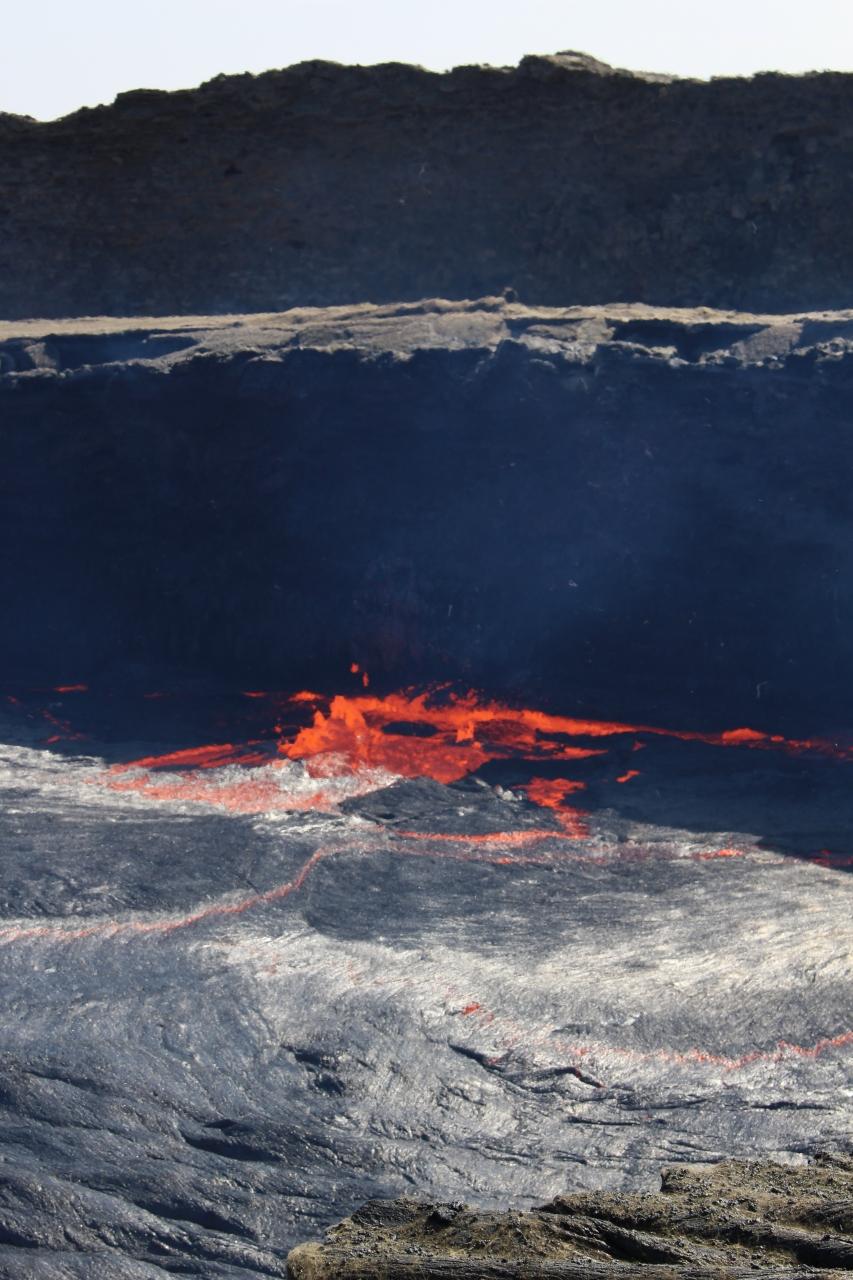 エルタアレ火山はちょうど登山した2週間前に溶岩が噴出したらしく、固まりたての溶岩の上を、ガイドさんが杖でつついてチェックをしながら歩いていた後ろを注意深く一列になって登りました。溶岩湖の溶岩が増えていたためか、昌晶さんの写真とは少し違った感じですがそれはそれで迫力がありました。