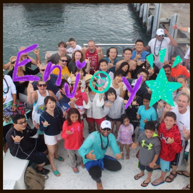朝のバス乗車時点で写真を申し込んだ人は少し割引があります。確か$55だったかな。 ウェットスーツは1人$5だったかな。 -
