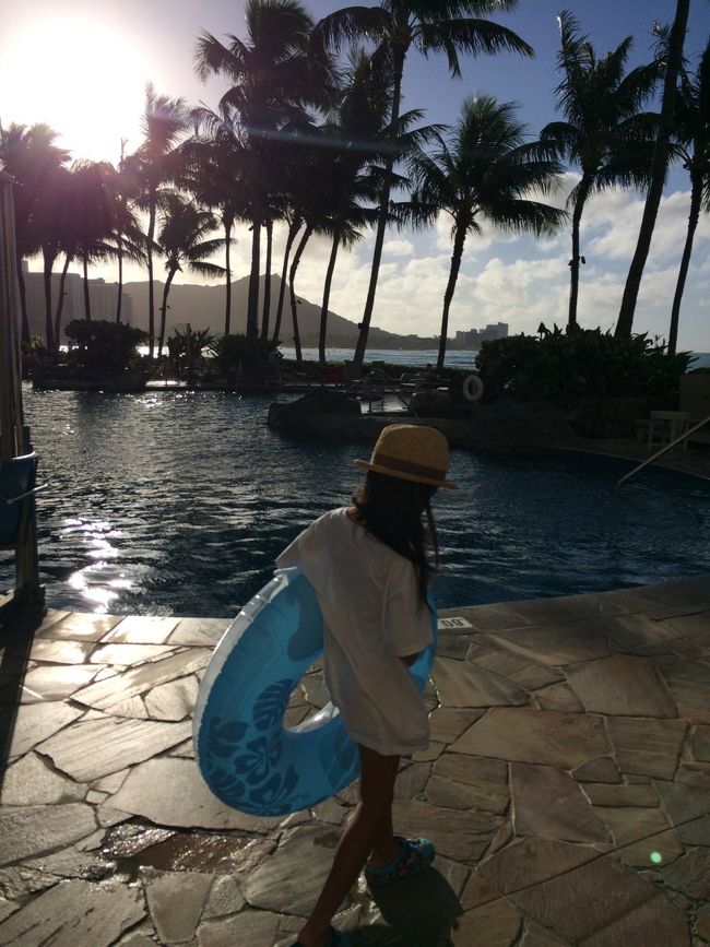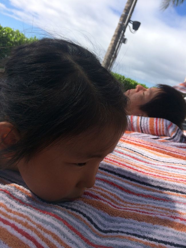 寝起きでサクッと水着に着替え、先に場所取りをしてくれていたパパの待つPoolへ〜