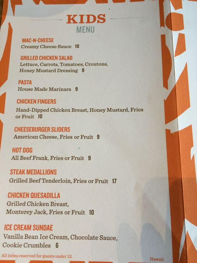 Hawaiiのアイランドヴィンテージ、飲み物を注文した時は名前を聞かれ、出来上がり時には名前で呼ばれます。 でも、食べ物も注文した人は名前のプレートが。。 その名前で呼ばれます。。笑 -
