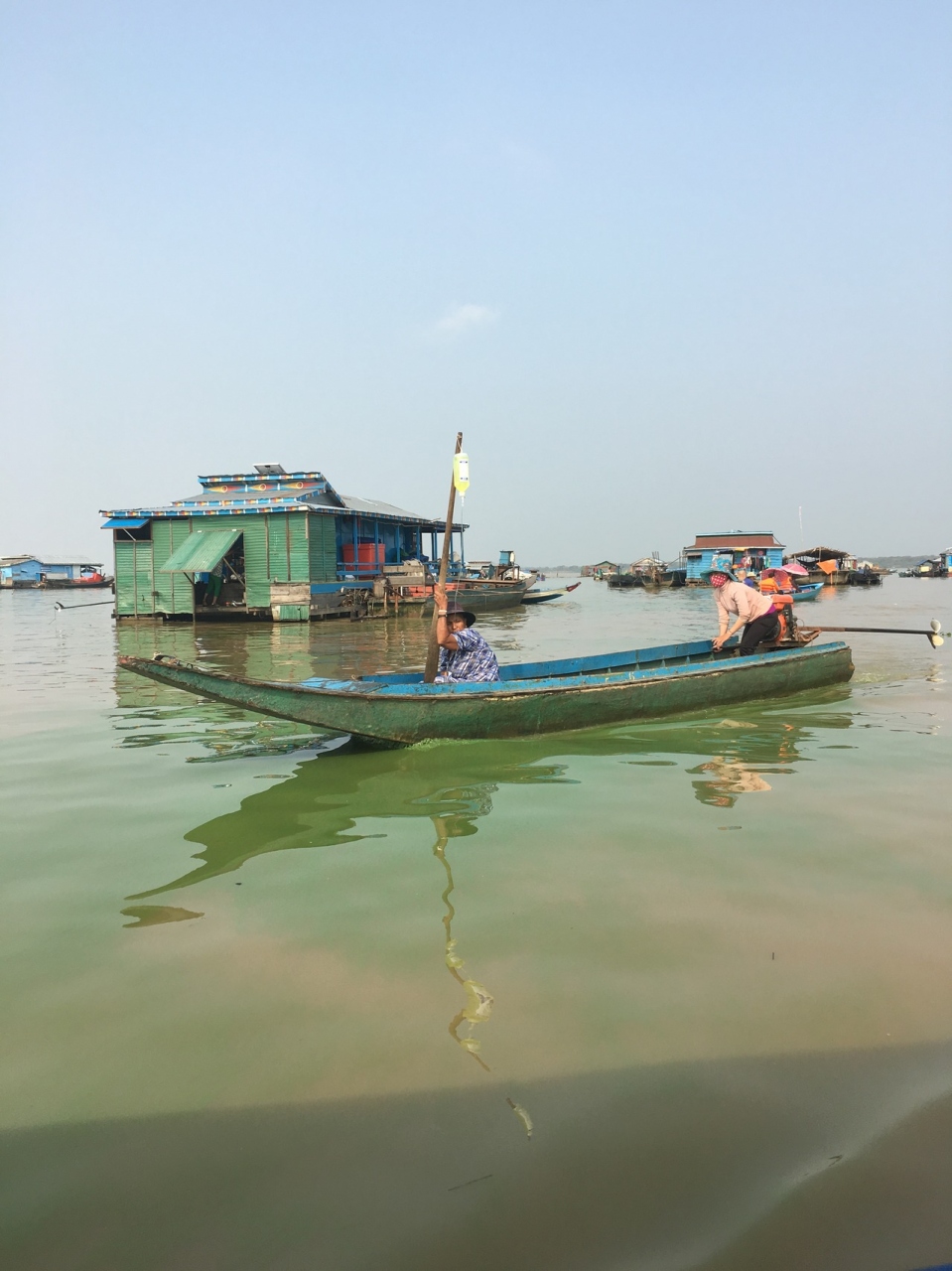 チュンクニア村にてベトナムのの移民とクメール人を暮らしている。漁師の生活を暮らしている。湖は浅くて、魚を死んだの臭いは気分が良くないかったです。