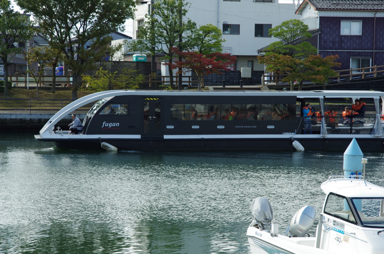 富山マラソンの受付に行く時に、駐車場が無さそうなので、思い切って岩瀬浜から船で行ってみました。帰りは富山ライトレールポートラムで帰ってきました。
