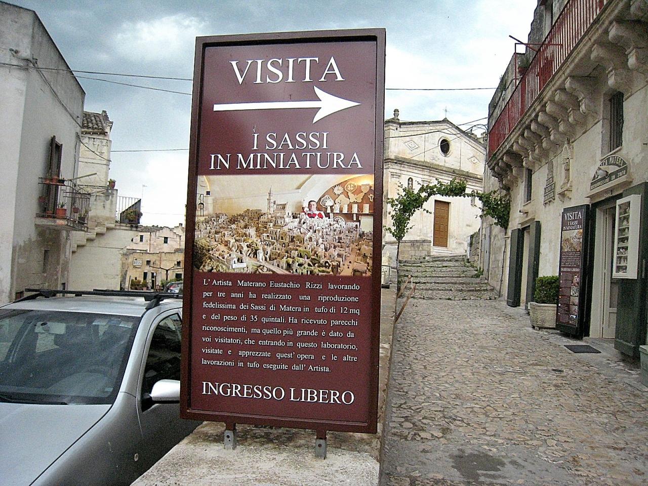 気を取り直して出発。町の通りには、サッシSASSI→ の方向指示版が要所要所にあるので、迷うことはありません。サッシとは、洞窟住居(複数形)のことです。 -