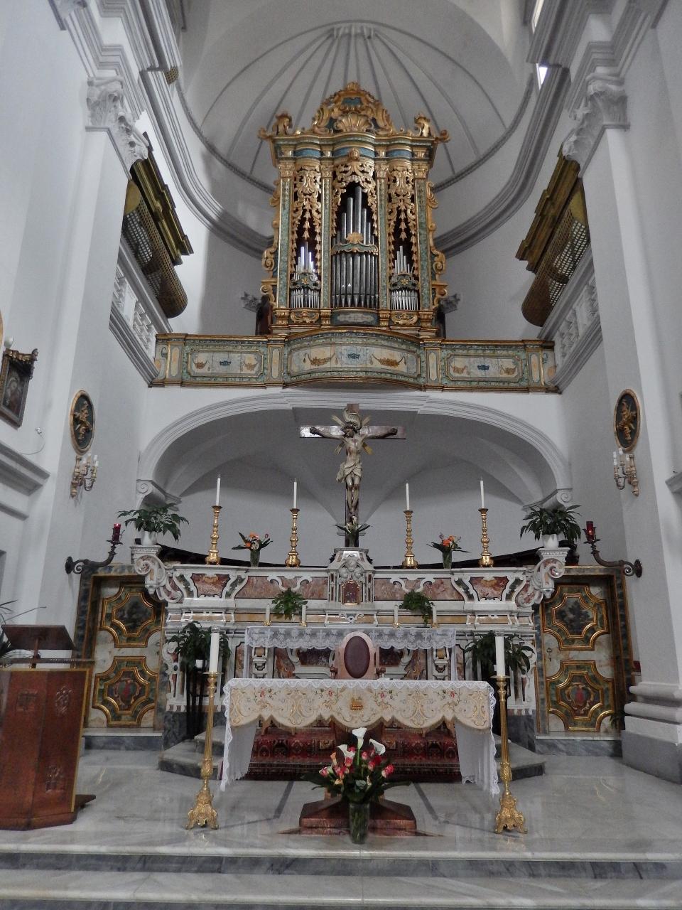 こちらは、右側最初の礼拝堂。祭壇が二つ置かれていますが、丸いほうは石灰岩で作った地元民、奥の大理石のほうはナポリの職人によって作られたものです。このドラムのような祭壇がえらく気に入って、じっと見つめてしまいました。