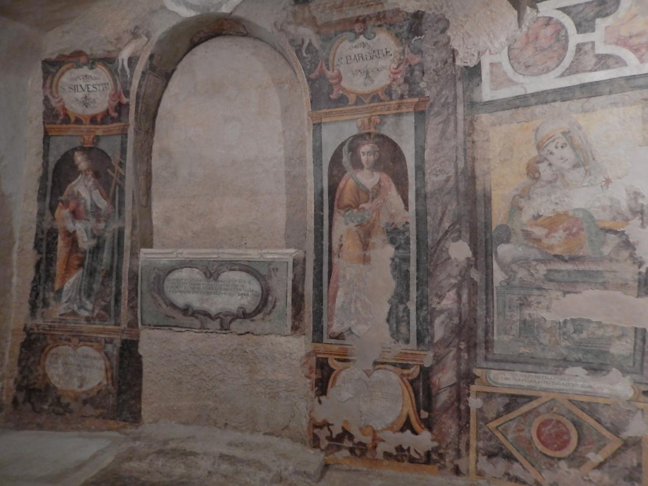 祭壇にはごくごく薄いフレスコの名残しか見られませんでしたが、両脇の聖人シルベストロとバルバラは綺麗に残っていました。