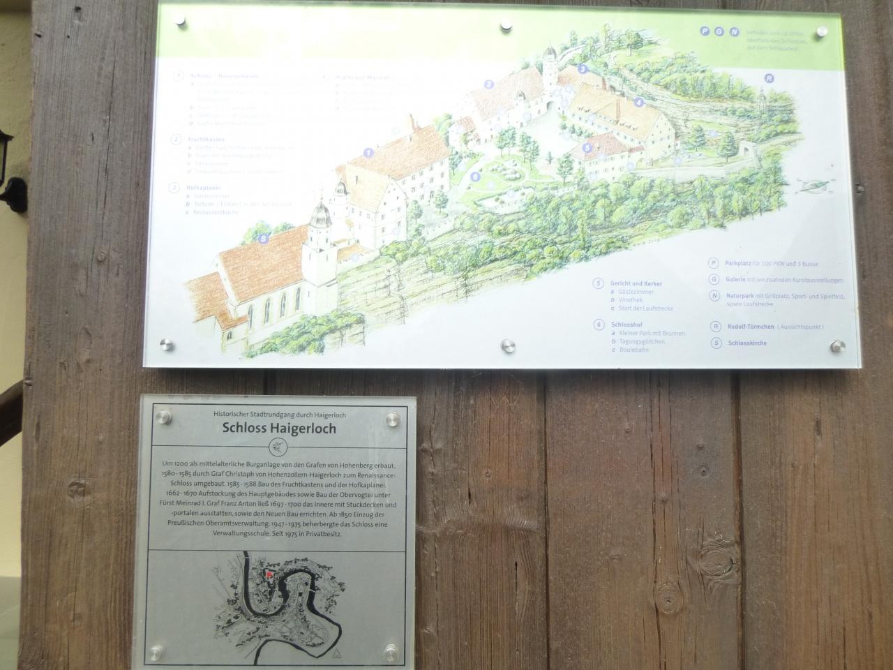 現在のハイガーロッホ城は13世紀に作られた城の上にあると云う。ネッカー川の支流であるEyachアイアッハー川(全長50.4km、下流十数kmにはかつて宿泊したことのある古城ホテルSchloss Weitenburgヴァイテンブルク城がある。)が、城の下を蛇行して流れているのが見える。