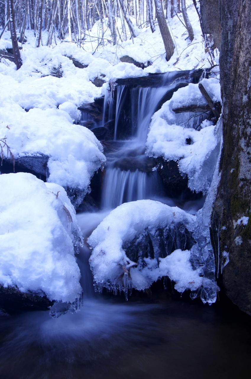 晴天は滝や渓流の撮影には不向きなんですが、福島でも山奥はともかく近場で雪景色の滝&渓流はそうそうめぐり合えないので、氷雪を惜き分け頑張って撮影してきました(^^ゞ。