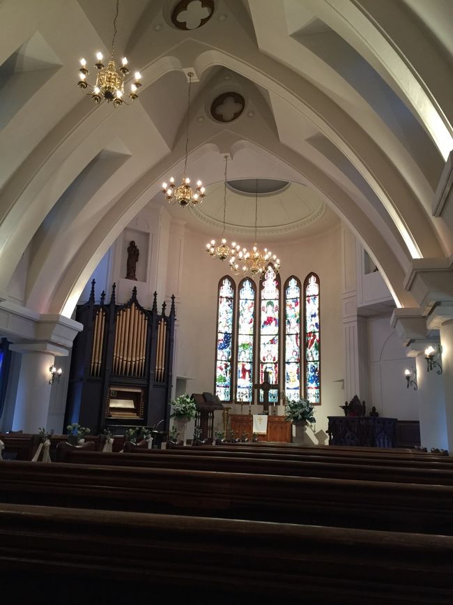 撮影禁止なので、外観の写真だけですが、中はアンティークのステンドグラスが壮麗です。