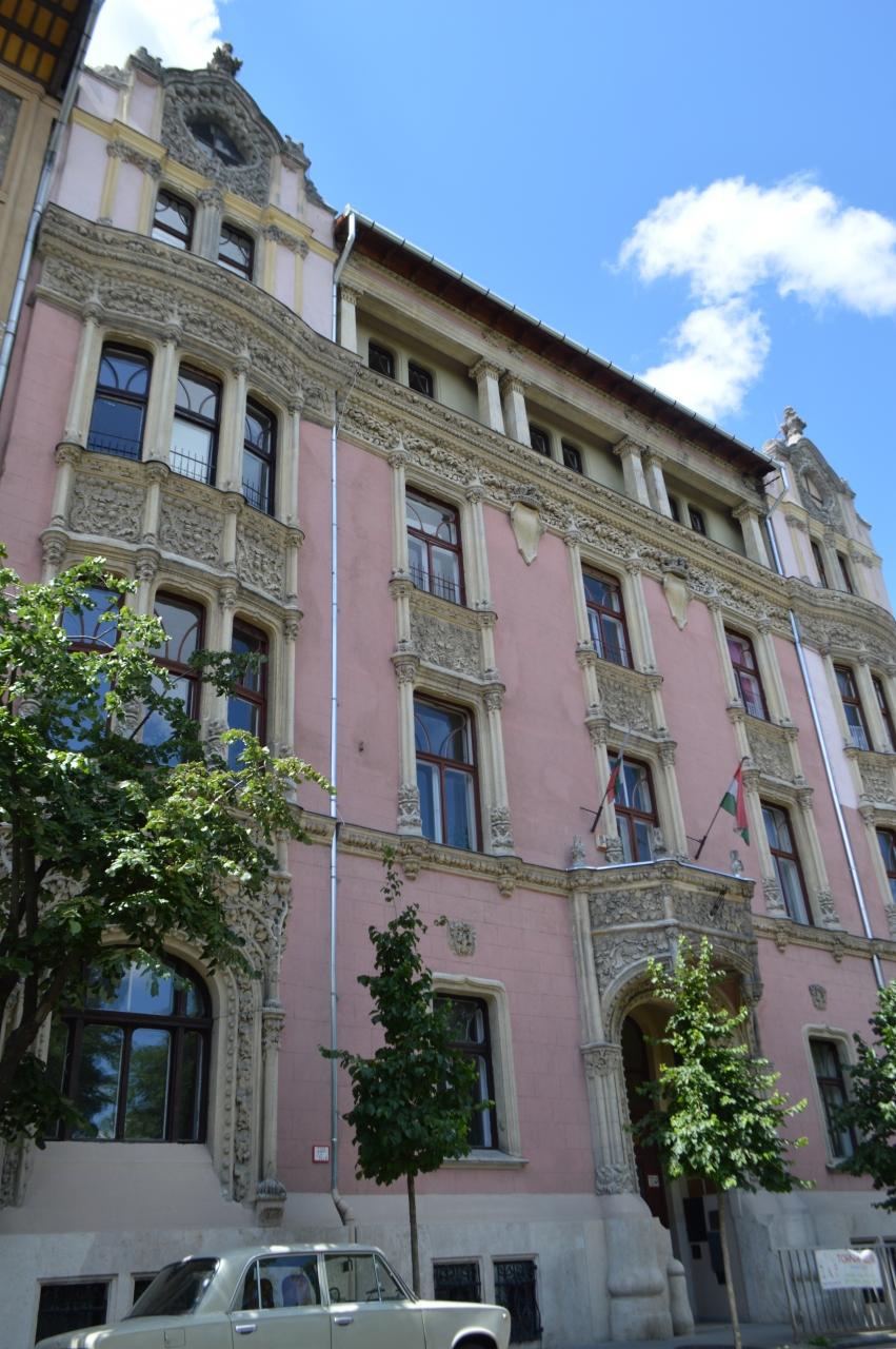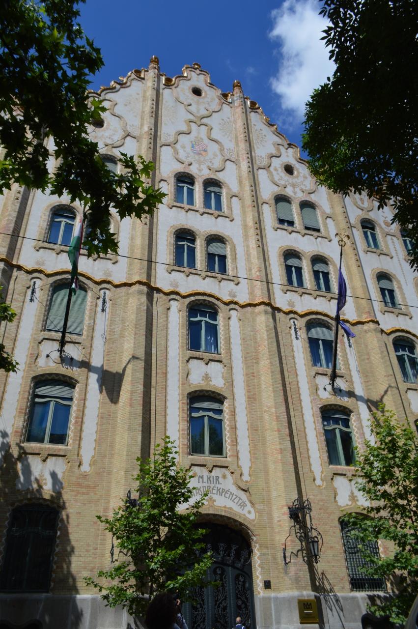 郵便局銀行。ファサードが立派ですが、屋根の部分はもっと凝っています。建築家レクナーは「誰も屋根を見ないのにどうしてこだわるのか?」と批判されて「鳥が見るからいいだろ」と答えたようです。