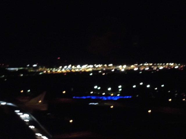 ピンボケですが、美しい夜の成田空港が見えています。 -