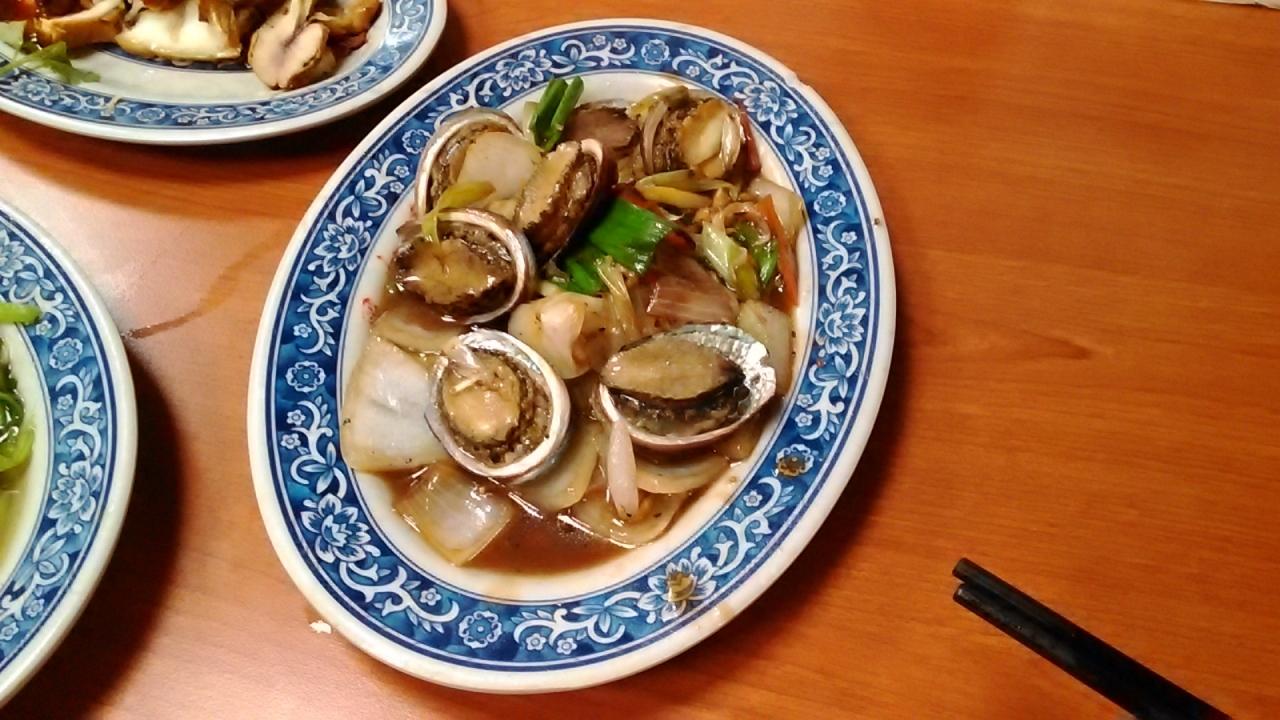 頂いた料理達(鮑にしては小さいトコブシかな) -