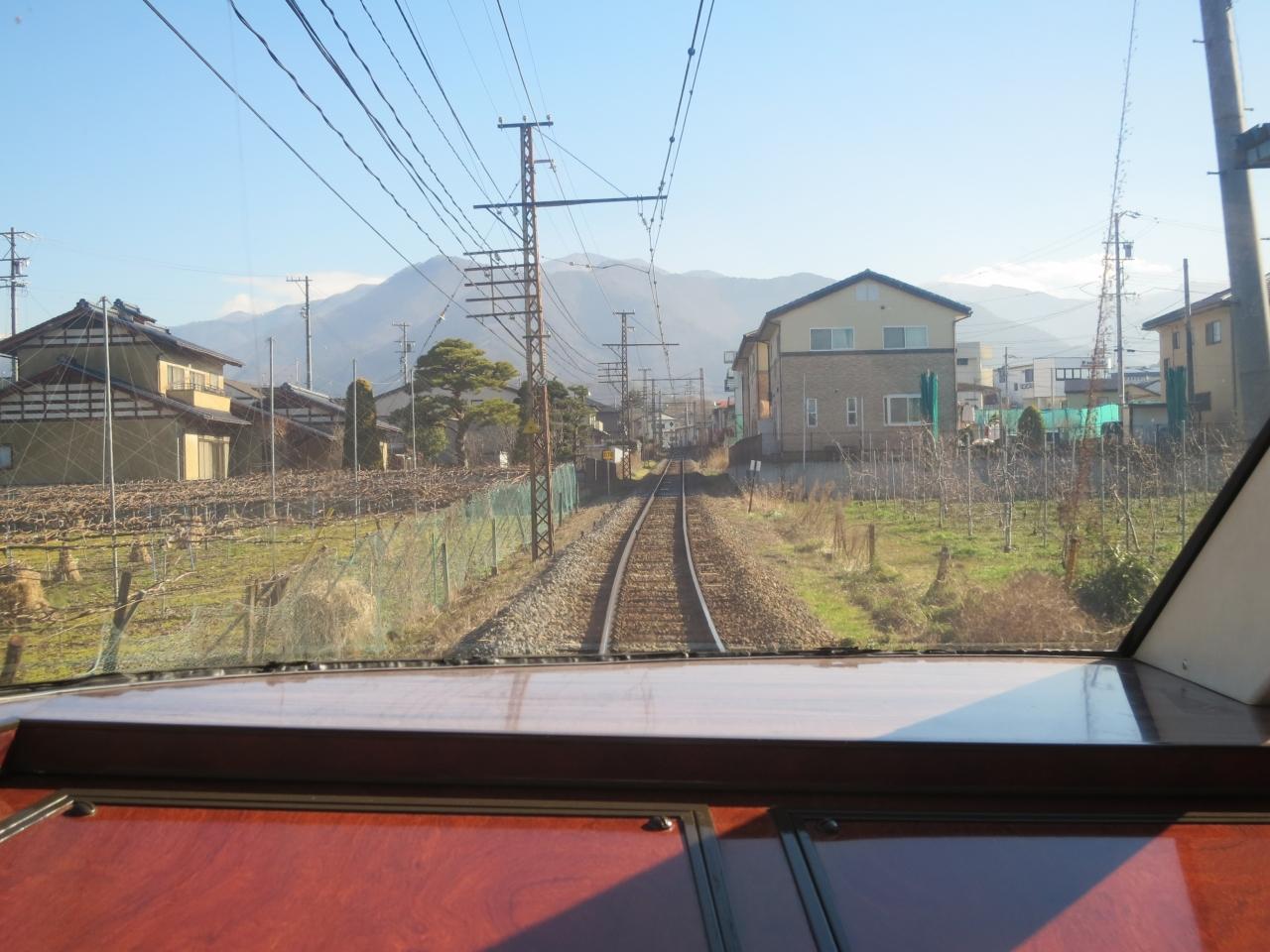長野駅から1時間20分ほどの旅でしたが列車名の通り「のんびり」で、ワインとエリンギにぎり寿司をいただきながら車窓を楽しむことができました。(この列車はお勧めです)
