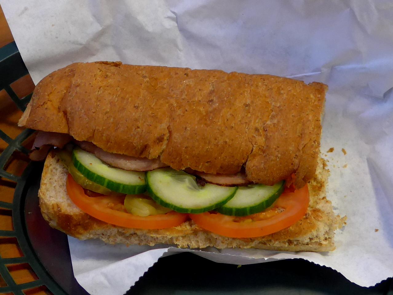 翌12/2 少し朝寝坊して,ホテルの朝食だと時間がかかるし高いので,ホテルの向かいのSubway.0800だが薄暗い