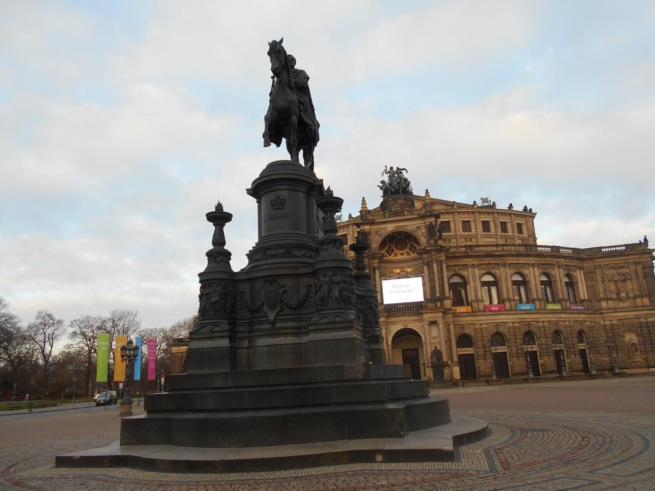 ゼンパー・オパー前のザクセン王像見ながらツヴィンガー宮殿に向かいます。