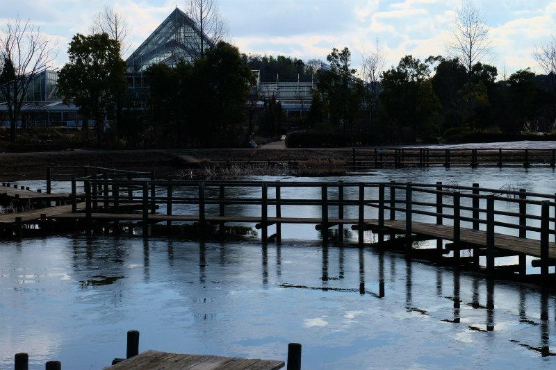 日陰は雪の残る、一月の 清水公園花ファンタジア