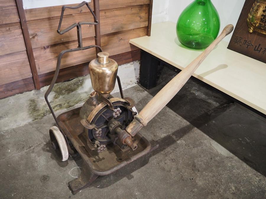 人力によるウイングポンプは、もろみ、清酒の輸送ポンプで、大正7、8年頃のものです。輸送能力は1時間に500〜600?だそうです。