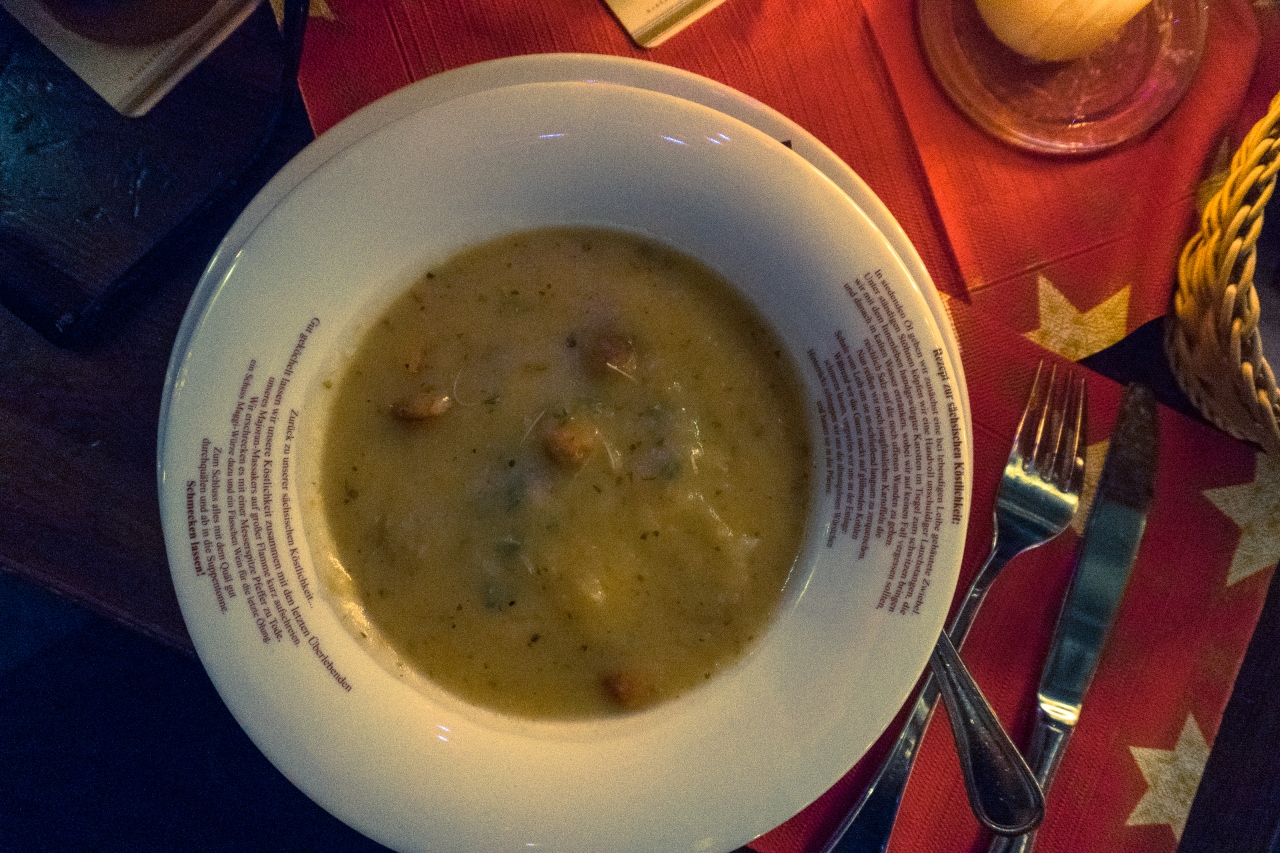 Dresden 1900というお店でスープ。ザクセン州名物。