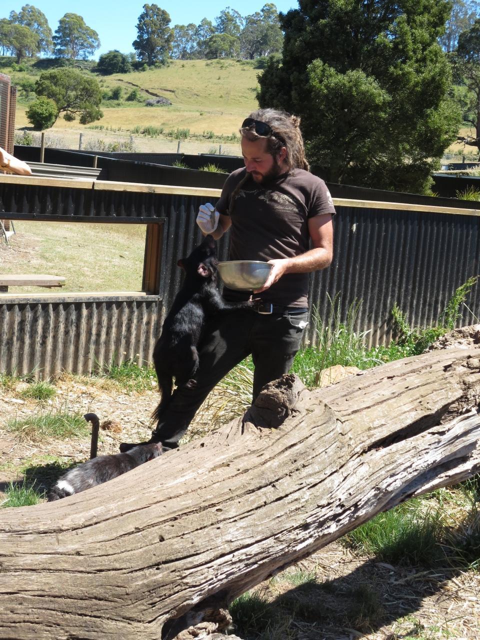 ガイドツアーまで時間があるので、それまで自分たちで見て回ることにしました。タスマニアデビルが囲いの中で飼われていました。
