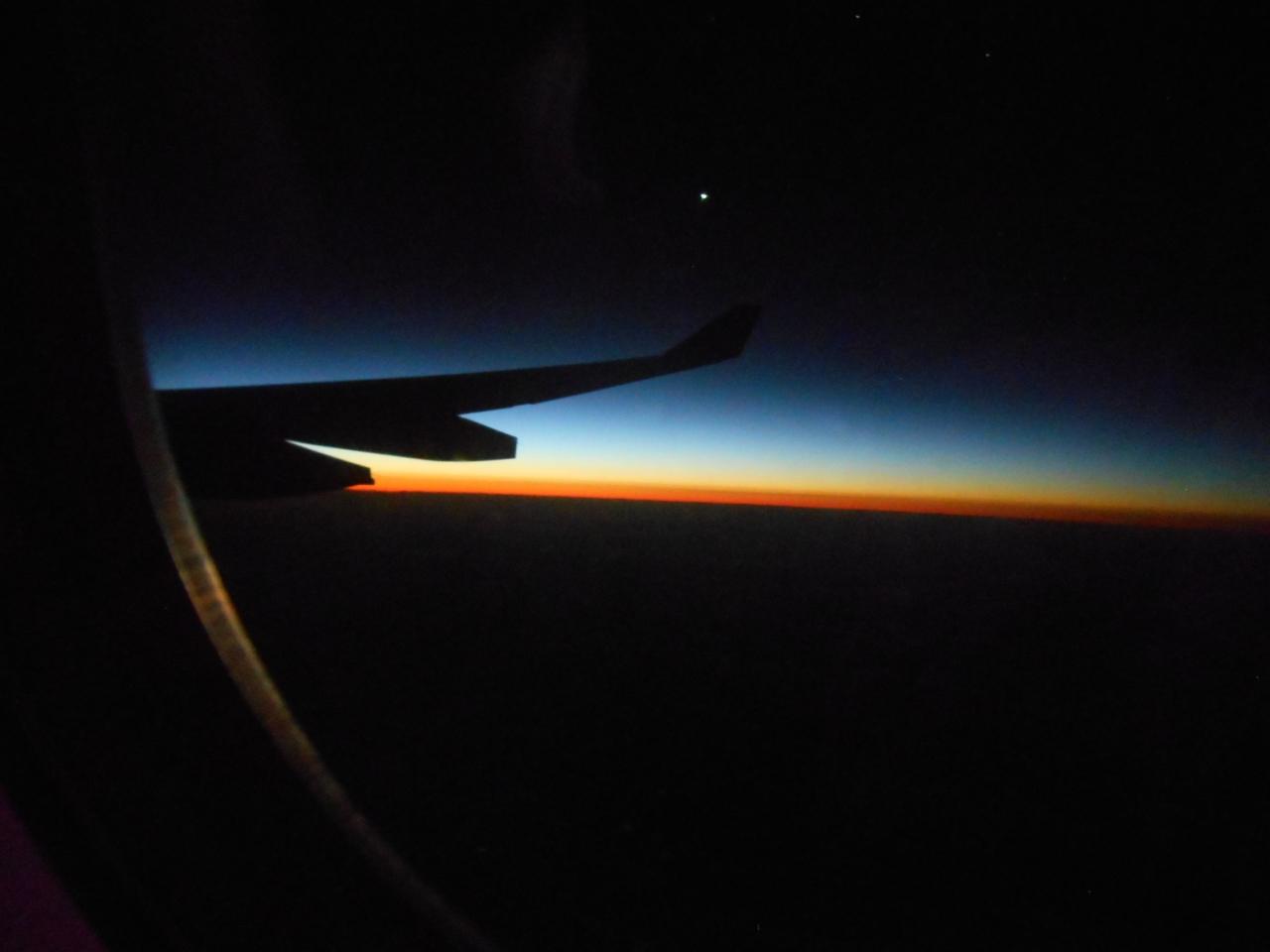 私は飛行機の中で見る朝日・朝やけが一番好きです。