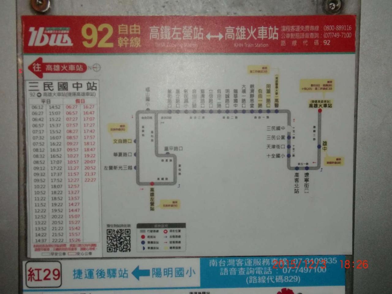 ここは三民國中バス停です。