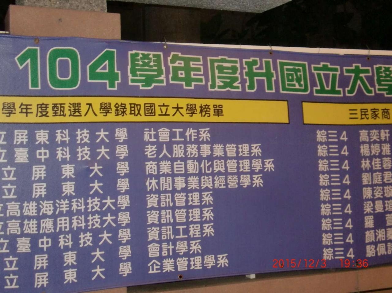 合格した大学の一覧が貼られていました。 -