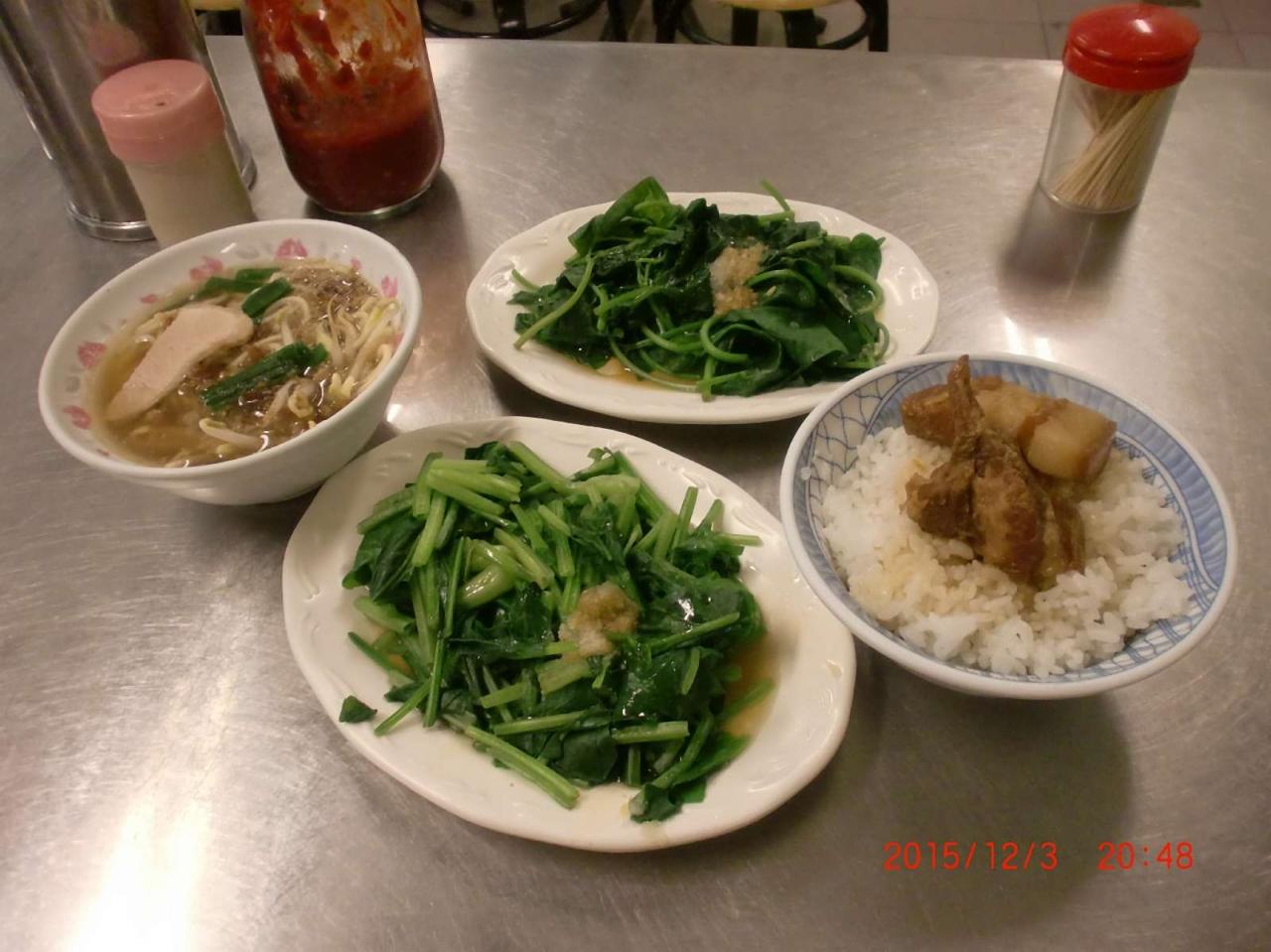 担仔麺、控肉飯、青菜(波菜と地瓜葉)