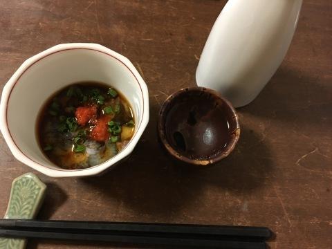 アテはナマコのようなぬめっとしてかみ応えのあるお魚の酢醤油和え(正式名称は失念)。