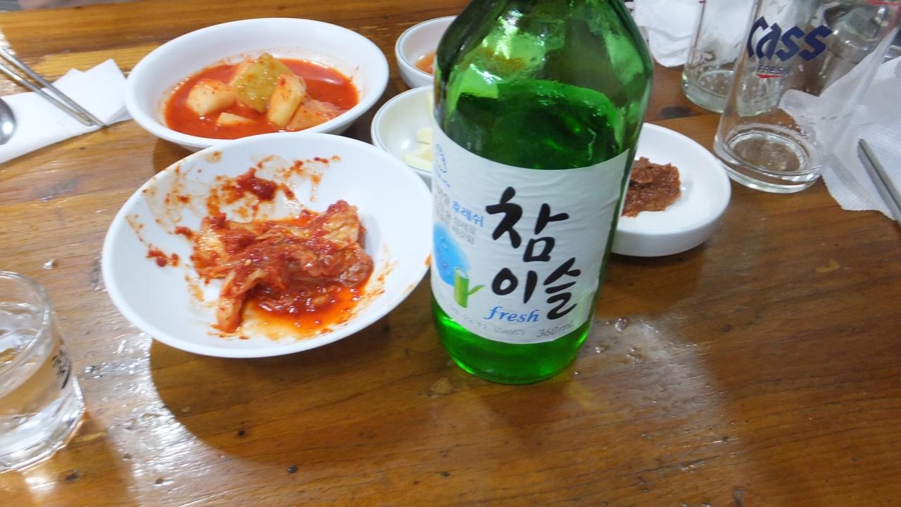 ビールを1本空けて、ソジュ(韓国焼酎)へ。