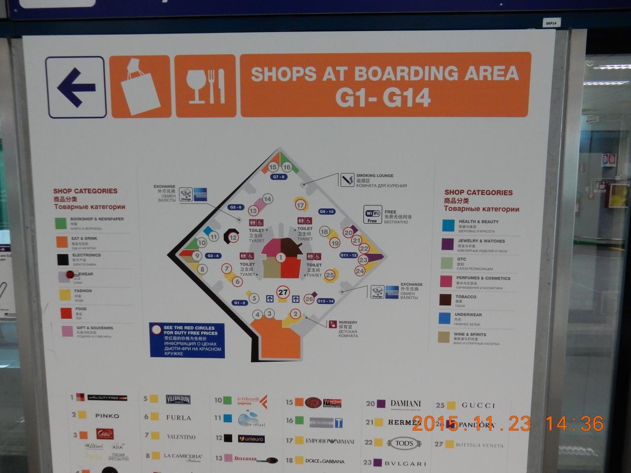 食事、お土産屋、ブランドショップ(GUCCI)など、