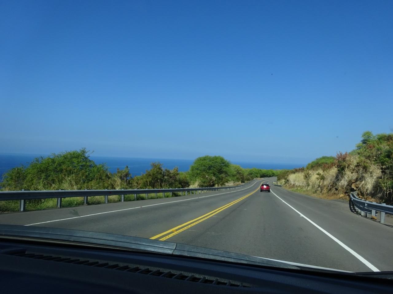 カイルアコナまで1時間。カメハメハ三世道路をアリイドライブに向けて下って行くと海がきれいに見えてきます。あ〜ハワイって感じ。 -