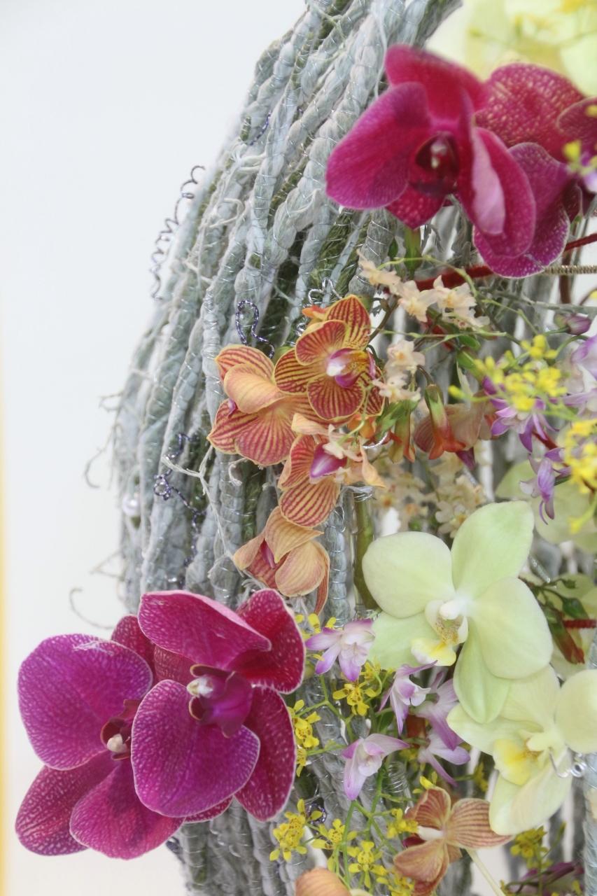 ■(3)大使夫人のテーブルディスプレイやフラワーデザインを広角ズームレンズで絵になるように&動物や虫に見えるランが集まったオーキッドズー&個別部門の鉢植えのランはマクロレンズで