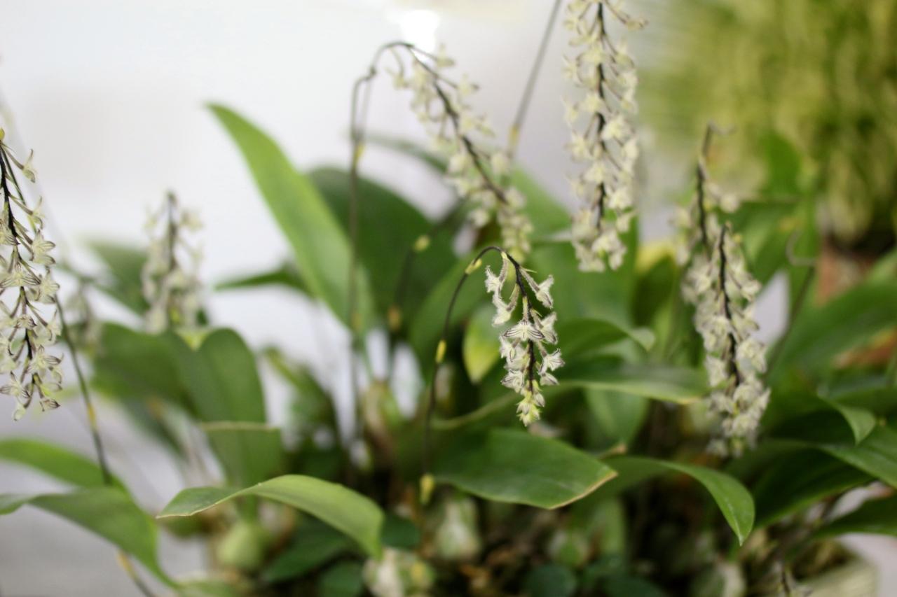 プテロティリス属のランが4つほど展示されていて、その中で1番気に入った白い花です。