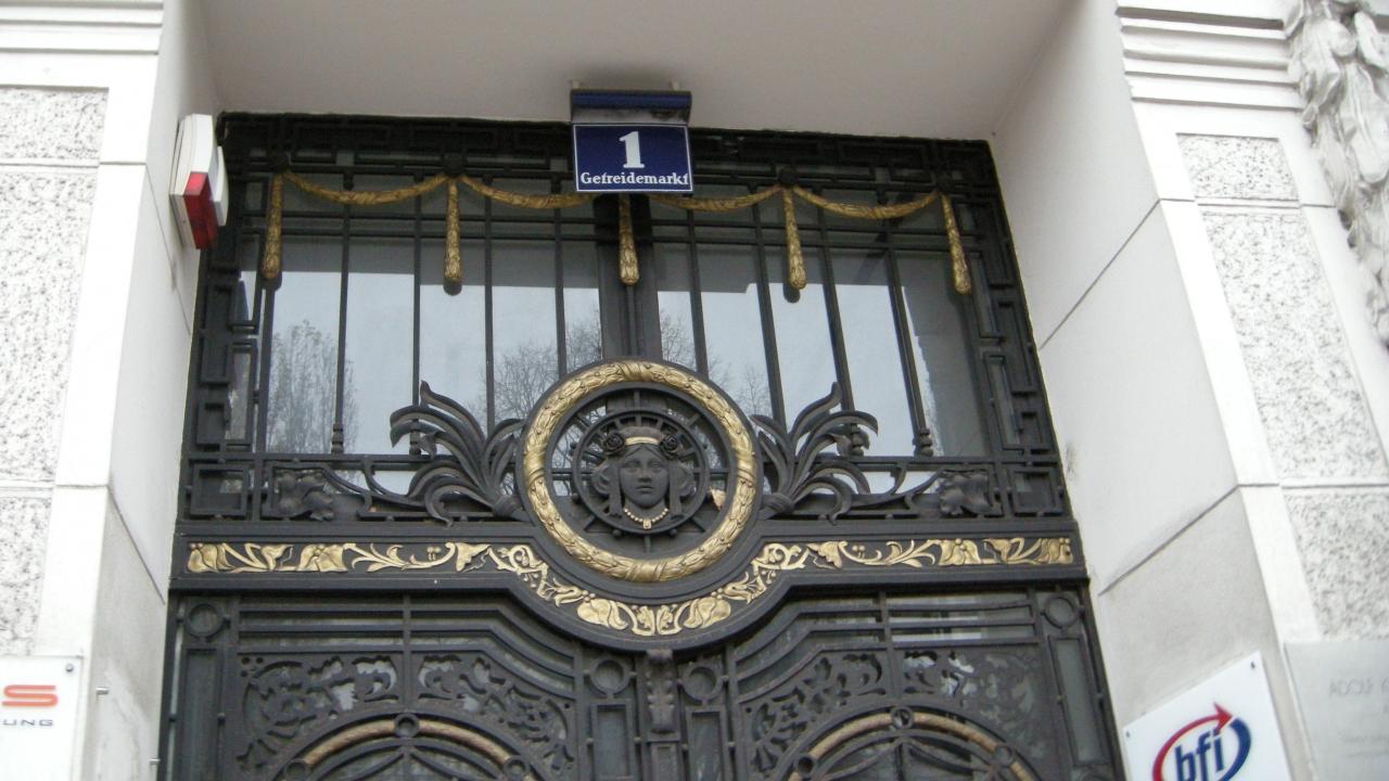 分離派館の入り口の上には