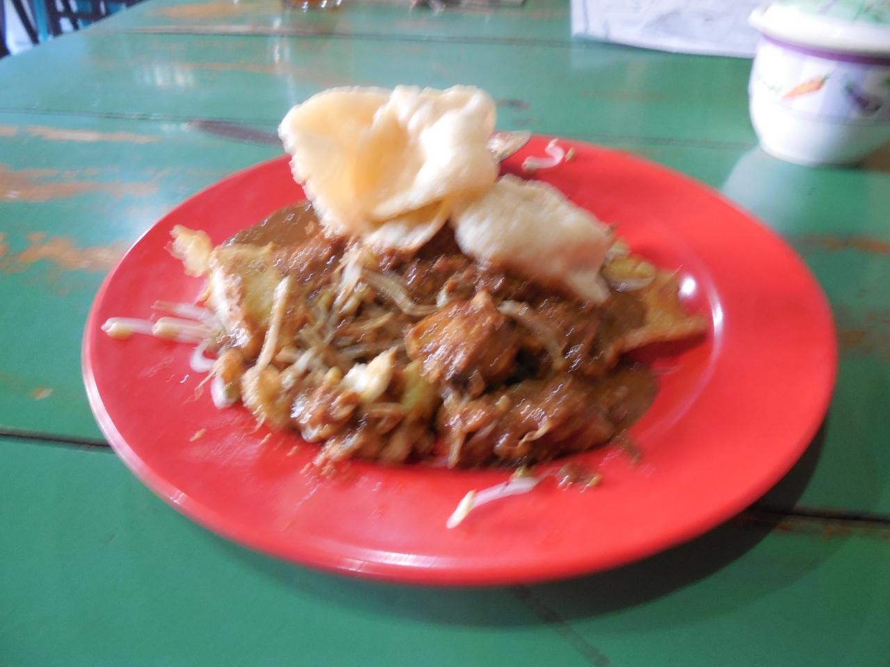 2日目から3回も行きましたお店。ミーゴレン、ナシゴレン、ビーフンなどのお店。110000ルピアで味は美味しい。日没後しばらくするとテイクアウトのお客さんの列ができます。